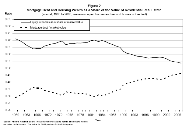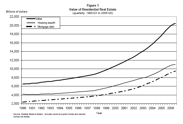 The rise in the market value of homes since the early 1990s has led to a substantial increase in the level of housing wealth (figure 1). However, since the mid-1980s, mortgage debt has grown more rapidly than home values, resulting in a decline in housing wealth as a share of the value of homes (figure 2).