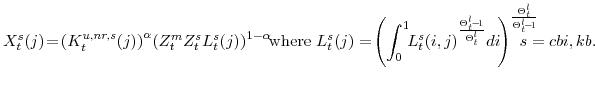 Each intermediate-good producers' output enters a final-goods production technology for its sector that takes the form of the Dixit-Stiglitz aggregator. As a result, intermediate goods producers are monopolistic competitors. We further assume that the intermediate goods producers face a