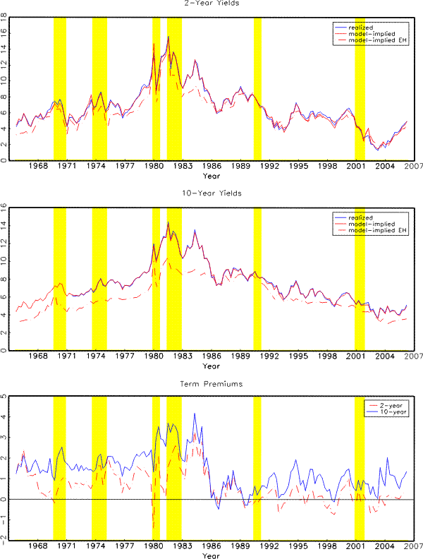 At first sight, this seems to suggest that much of the yield curve variations are not related to macro variables, boding ill for any attempt to extract information about future economic condition from the current term structure or to explain yield curve variations using macro variables. A different interpretation, however, is that the assumption of a known fixed-coefficient data generating process is the reason for the disparate results. Indeed, ample empirical evidence that monetary policy practice and the structure of the macro economy may have shifted over time would suggest that such an assumption is unlikely to hold. Even if the true underlying structure of the economy were fixed over time, but economic agents had to estimate and discover this structure, beliefs would evolve over time as additional data were incorporated into the agents's discovery process. Depending on how real-time perceptions about the structure of the economy evolved over time, real-time expectations, and the term-structure of interest rates mirroring these expectations, would correspondingly differ. For instance, for any given history of economic growth rates and inflation, differences in the perceived persistence or the perceived long-term asymptotes of these variables could have vastly different implications for longer-term interest rates. Obviously, in such circumstances, yields continue to be driven by expectations about future macro variables, which are in turn linked to current macro variables in a time-varying fashion, suggesting that fixed-coefficient regressions like (1) and (2) are misspecified.