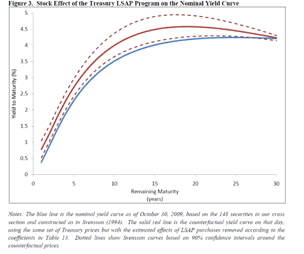 We view these results as economically important. A decline in longer-term Treasury yields on the order of 30 to 50 basis points is large by historical standards. Moreover, if this decline had indeed been passed through to private credit markets, it would have represented a substantial reduction in the cost of borrowing for businesses and households. Although we do not test whether this pass-through actually occurred, the observation that most credit spreads declined during the life of the program suggests that at least some of it may have. It thus appears that the Treasury LSAP program was probably successful in its stated goal of broadly reducing interest rates, at least relative to what they would otherwise have been.