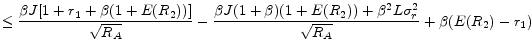 ![\displaystyle = \beta L \left[ \frac{ -(E(r_{2})-r_{1}) \left\{ \sqrt{R_{F}} + ((1+r_{1})+\beta(1+E(r_{2})))\beta L \right\} }{ \sqrt{R_{F}}\sqrt{R_{A}} } \right]](img182.gif)