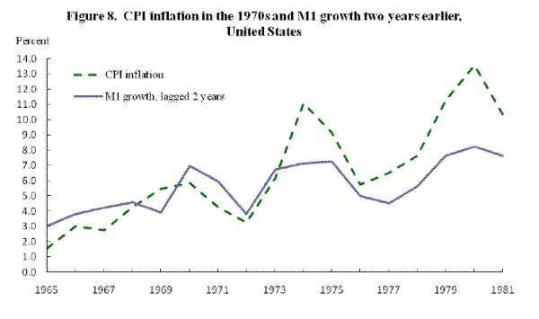 averages of the former M1 aggregate against the corresponding growth in the modern M1 series.11