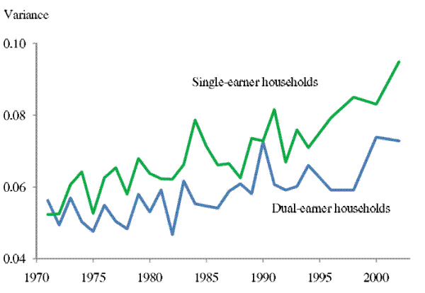 We now address the question of whether the rise in income uncertainties is a widespread phenomenon or is concentrated within a subpopulation. In particular, we are interested in how trends in income uncertainty differ between dual-earner and single-earner households and across income quartiles.