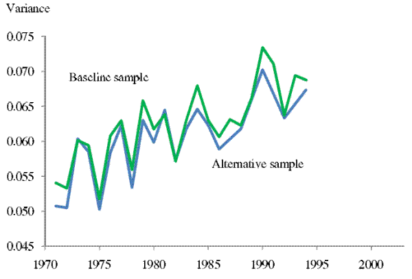 to our baseline results. For example, as shown in Figure 7, the 2-year-ahead income uncertainty estimated using the baseline and the alternative sample are very close for the overlapping sample period (1971 - 1994). The cumulative increase for this period is 24% for the baseline sample and 23% for