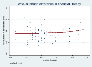 Figure 4 shows the age profile of the financial sophistication score based on the husband's age. The age profile is estimated using a lowess plot (locally weighted scatterplot smoothing), which non-parametrically estimates:
