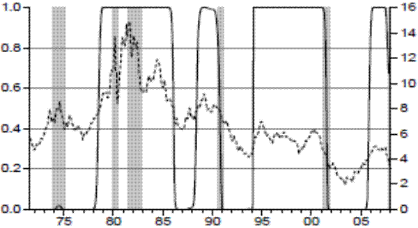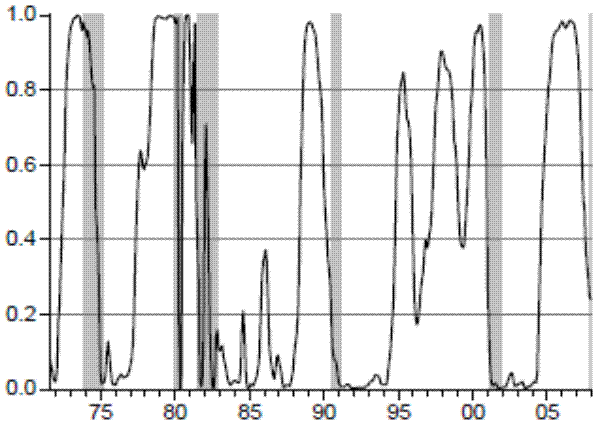 , is plotted in Figure 3 along with recessions as dated by the NBER (shaded area). The estimated probability of recession captures the NBER chronology very closely.