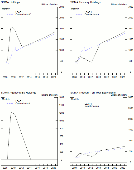 evolved without a LSAP1 program.22 The difference between the paths of SOMA holdings in these two scenarios represents supposed supply shocks to private