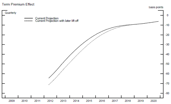 Our TPE estimate depends critically on the assumed path of how the Federal Reserve's unconventional monetary policy is expected to unwind and, hence, how the net supply of assets return back to private investors. Using the June 2011 FOMC Minutes as guidance, we link the exit strategy principles to when the federal funds rate will lift off from the lower bound. Here we test how much our TPE estimate would change if we shifted from the June 2012 Blue Chip forecast (which has lift off in late 2013) to the June 2012 Primary Dealer survey (which has lift off in late 2014). Overall, we find that if market participants shifted their views of the timing of the lift off of the federal funds rate toward the guidance provided in the January 2012 statement that "economic conditions ...are likely to warrant exceptionally low levels for the federal funds rate at least through late 2014", the TPE would be only modestly larger.
