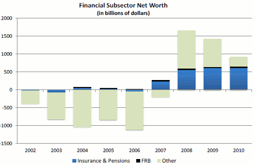 In the financial accounts, the insurance sector is based on reports filed to insurance authorities. Of note, it does not include most insurance holding companies. For pensions, the financial account also reflects both defined benefit and defined contribution plans.