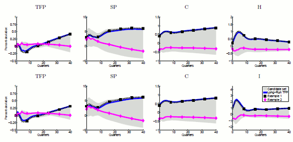 The identification problem implies that there exists an infinity of solutions consistent with the BP restrictions. The results reported in Beaudry and Portier (2006) represent one particular solution but there is no economic justification for why this solution should be preferred over any of the