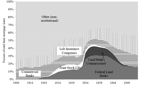 Horton, Donald C., Harald C. Larsen, and Norman J. Wall. (1942) Farm-Mortgage Credit Facilities in the United States, United States Department of Agriculture, Miscellaneous Publication No. 478.