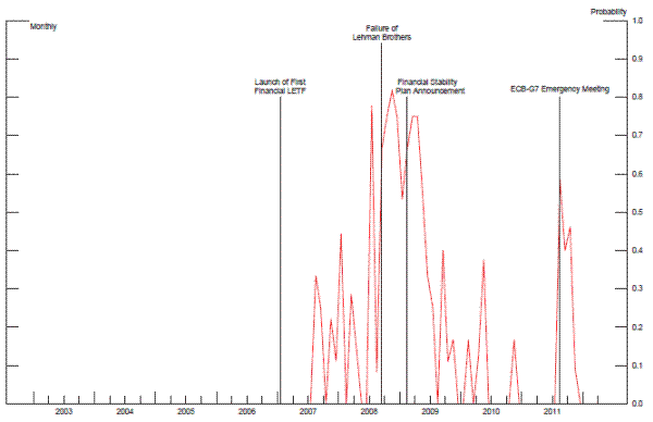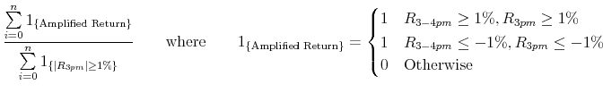 This figure plots the frequency of a 1% price move in the Russell 1000 Financial Services Index between 3:00pm and 4:00pm given that the index has already moved 1% by 3:00pm in the same direction. This measure is calculated from a month's trading days in which the index moved 1% by 3:00pm. More formally this frequency is: