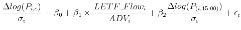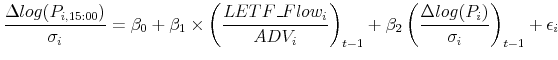 To estimate the net price reaction to LETF flows, I implement the regression specification of Obizhaeva (2009) and allow for control variables.
