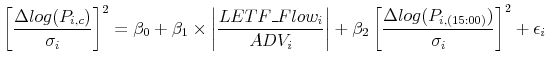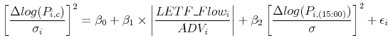 LETF rebalancing and trades in anticipation of LETF rebalancing may affect the stock volatility in the last hour of trading. To estimate the volatility effects of LETF rebalancing, I use the following regression specification.