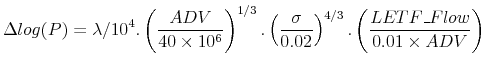 The coefficients on LETF Flows can be interpreted as a change in price as a percent of daily volatility in response to LETF flows equivalent to 1% of the volume. For example, LETF flows equivalent to 1% of stock volume, increases the price of a financial stock by 3.09% of its daily volatility.