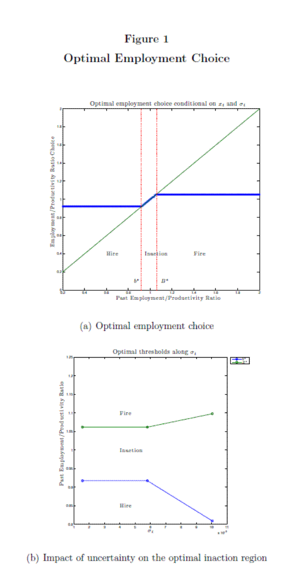 . Consequently, the firm will wait until aggregate economic conditions are sufficiently good to start hiring when volatility is high compared to times when it is low. In this environment in which