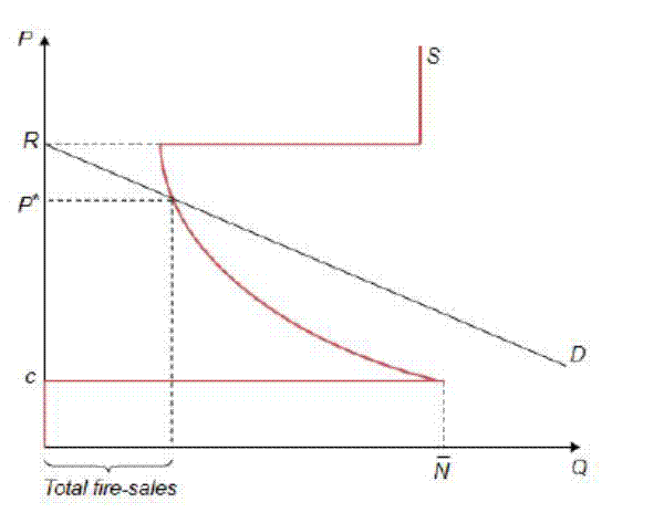Asset specificity is not the only reason for fire sales. In Allen and Gale (1994,1998) and Acharya and Yorulmazer (2008) the reason for fire sales is the limited available amount of cash in the market to buy long-term assets offered for sale by agents who need liquid resources immediately. The scarcity of liquid resources leads to necessary discounts in asset prices, a phenomenon known as "cash-in-the-market pricing".