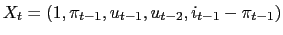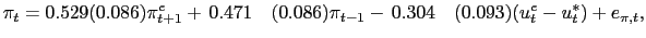 GDP price index, depending on the period) during quarter t to lagged inflation,