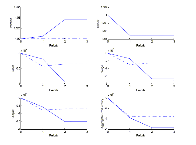 To the best of our knowledge, the possibility of a perverse policy response has not been discussed in the literature. Our finding, though, is related to the stabilization bias. Clarida, Gali, and Gertler (1999) and Svensson (1997), among others, point out that credibility is needed to implement the optimal policy response. However, the literature has not pursued the analysis of stabilization policy in the absence of credibility.