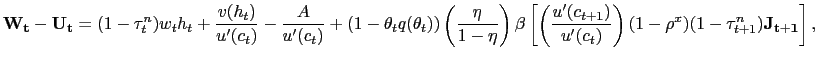 In each case, the link between the Hosios condition and a zero capital tax is severed through the Nash wage bargaining process, which is the typical assumption about how wages are set in this class of models, an assumption we maintain. The wage is the critical endogenous variable that affects efficiency along the extensive labor margin. In stylized form, the wage that emerges from Nash bargaining can be expressed as
