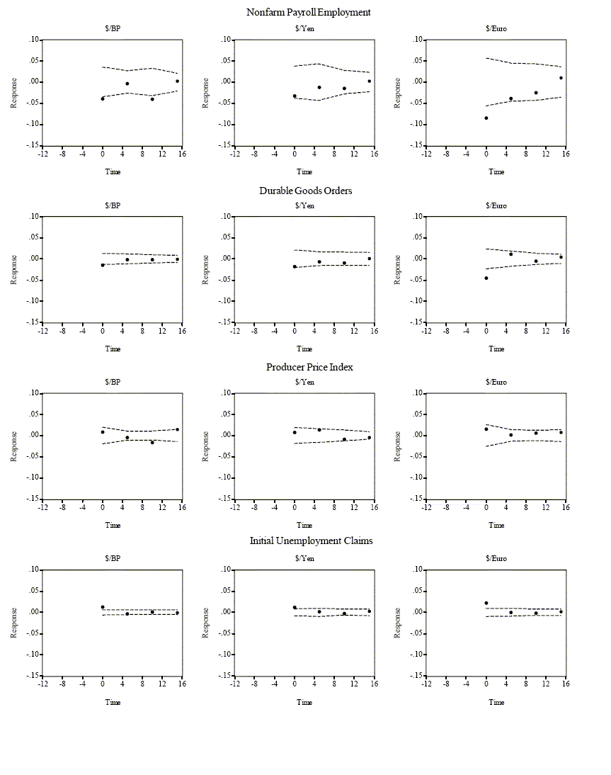 10. Hence the post-announcement window is one and one-half hours. Some preliminary experimentation revealed that our chosen pre- and post-event windows were more than adequate to capture the systematic news responses. Return to text