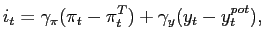 Monetary policy is assumed to follow a Taylor rule in which the nominal interest rate responds to the deviation of domestic inflation from the central bank's inflation target and to the output gap. Government purchases are exogenous, have no direct effect on the utility of households, and are financed by lump-sum taxes.