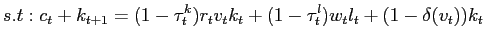 3. As discussed in Martin (2007), it is important that at least some depreciation is not tax deductible, as assumed for instance in Greenwood et al. (1998). If this is not the case, the current capital tax is not viewed by the current government as distortionary and an equilibrium in such economy may not exist. In some developed economies, there is a tax allowance for accounting depreciation, which differs from the actual depreciation. If there is excess depreciation due to a high capacity utilization such depreciation would still not be tax deductible. Return to text
