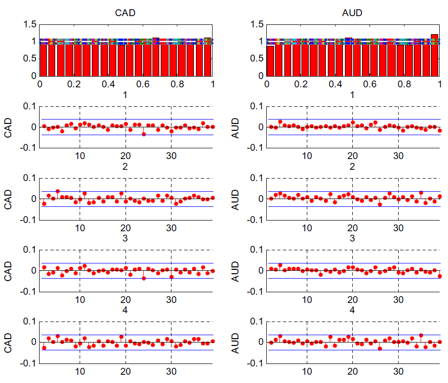 | AUD/EUR | 0.0388 (0.02) | 0.7851 (0.22) | 0.1803 (0.16) | 0.0012 (0.02) | 0.3902 (0.25) | 0.1137 (0.25) |