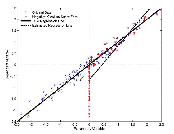 Figure 1: The Effect of Censoring Negative Values of the Explanatory Variable