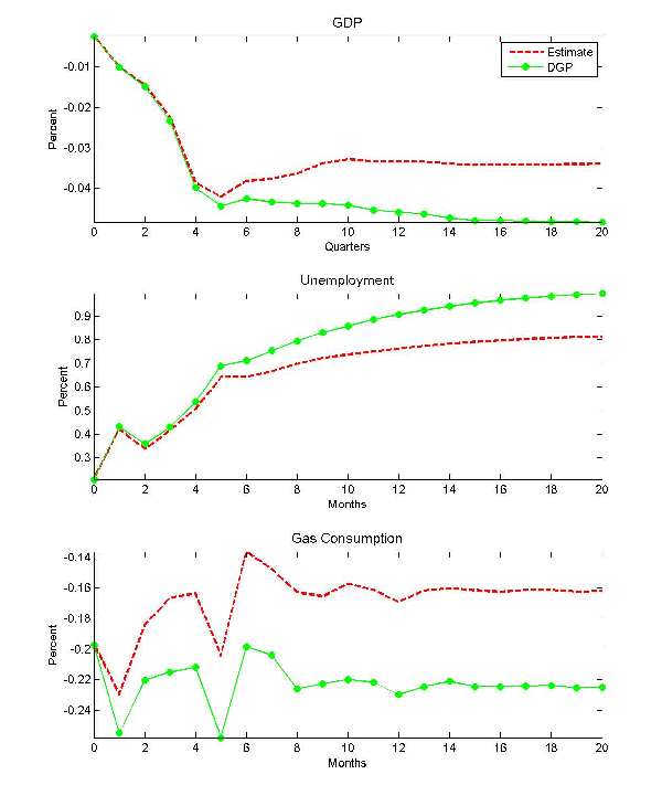 In section 2, we illustrate this point in the context of a stylized static model. We establish the inconsistency of estimators of conventional asymmetric models analytically, and we study the determinants of the asymptotic bias of the estimator by simulation. We show that static censored regressor models will be consistent only in very special and theoretically implausible cases. In section 3, we strengthen this result by showing that estimates of dynamic censored VAR models of the type frequently employed in the literature are fundamentally misspecified and produce inconsistent impulse response estimates regardless of the DGP. We demonstrate that censored VAR models will distort the quantitative importance of energy price increases asymptotically, even when energy price decreases have no effect on the economy. The reason is that such asymmetric DGPs cannot be represented as censored VAR models. We discuss how alternative, correctly specified asymmetric models may be constructed and estimated consistently using restricted maximum likelihood estimators.