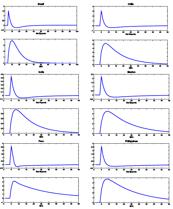3. This evidence is contrary to the country-specific unit root tests that suggested that nx and nfa are not stationary. The difference in results is due to the small-sample problems of unit root tests, and to the fact that the unit root tests are country specific, while PMG estimation uses the full panel dataset to identify the error-correction relationship. Return to text
