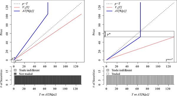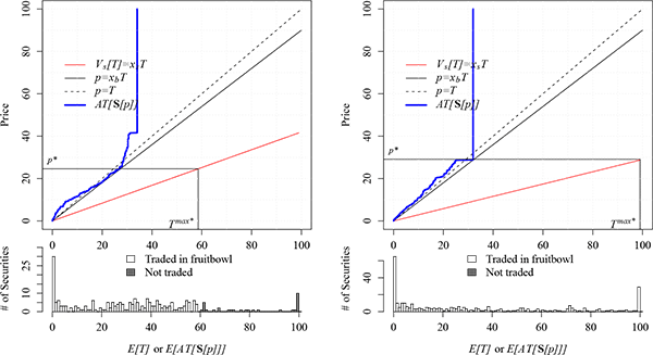 11. Although buyers do not know the intrinsic values of the individual securities, there is no winner's curse in our setup because all buyers value the bundle of securities offered into the fruit bowl equally, based on their perfect knowledge of the distribution of the intrinsic values and their knowledge of the sellers' discount factor. Return to text