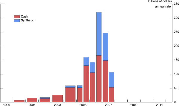 Figure 5: Issuance of publicly traded SF ABS CDOs. Source: Cordell, Huang, and Williams (2012).