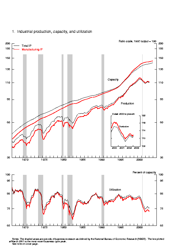 Capacity utilization | 1972-2002 Low High Jan. | Oct. Nov. Dec. Jan. | Jan. '03