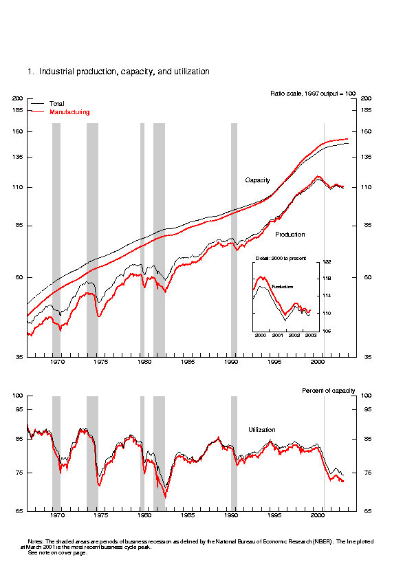 Capacity utilization | 1972-2002 Low High June | Mar. Apr. May June | June '03