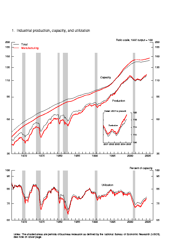 Chart | | Chart 1: Industrial Production, Capacity, and Capacity Utilization | Chart | | Chart 2: Industrial Production and Capacity Utilization | Chart | | Chart 3: Industrial Production and Capacity Utilization, High Technology Industries | | Ascii | Screen reader | Table 1:Industrial Production: Market and Industry Groups (percent change) |
