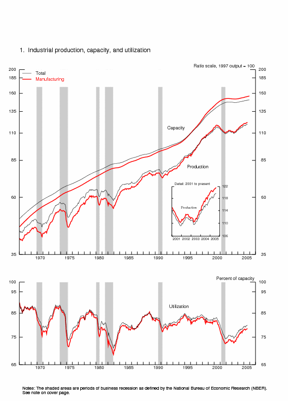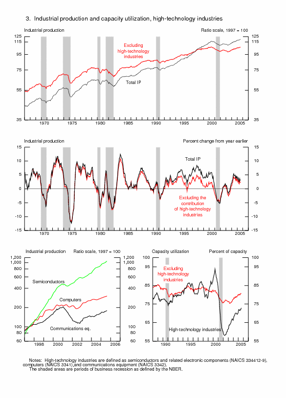 | Ascii | Screen reader | Summary: Industrial Production and Capacity Utilization | Chart | Chart 1: Industrial Production, Capacity, and Capacity Utilization | Chart | Chart 2: Industrial Production and Capacity Utilization | Chart | Chart 3: Industrial Production and Capacity Utilization, High Technology Industries |