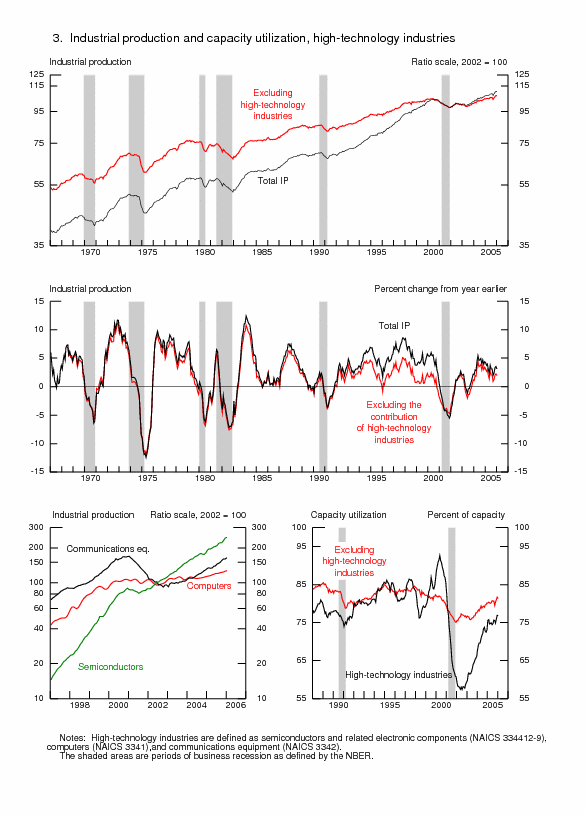| Ascii | Screen reader | Summary: Industrial Production and Capacity Utilization | Chart | Chart 1: Industrial Production, Capacity, and Capacity Utilization | Chart | Chart 2: Industrial Production and Capacity Utilization | Chart | Chart 3: Industrial Production and Capacity Utilization, High Technology Industries |