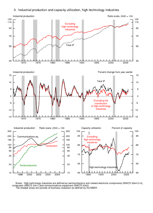 | Ascii | Screen reader | Summary: Industrial Production and Capacity Utilization | Chart | Chart 1: Industrial Production, Capacity, and Capacity Utilization | Chart | Chart 2: Industrial Production and Capacity Utilization | Chart | Chart 3: Industrial Production and Capacity Utilization, High Technology Industries |