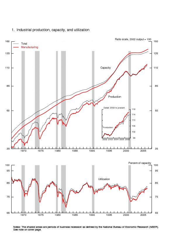 | Ascii | Screen reader | Summary: Industrial Production and Capacity Utilization | Chart | Chart 1: Industrial Production, Capacity, and Capacity Utilization | Chart | Chart 2: Industrial Production and Capacity Utilization | Chart | Chart 3: Industrial Production and Capacity Utilization, High Technology Industries |