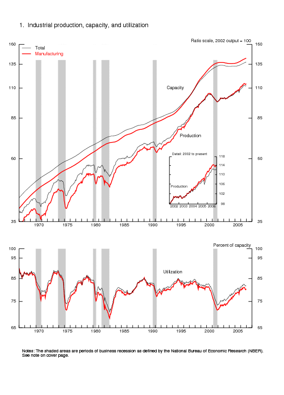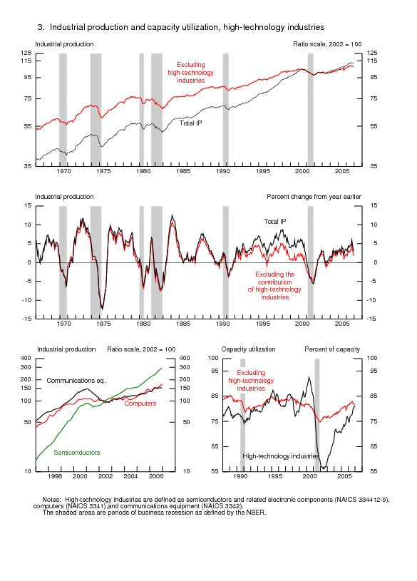 | Ascii | Screen reader | Summary: Industrial Production and Capacity Utilization | Chart | Chart 1: Industrial Production, Capacity, and Capacity Utilization | Chart | Chart 2: Industrial Production and Capacity Utilization | Chart | Chart 3: Industrial Production and Capacity Utilization, High Technology Industries |