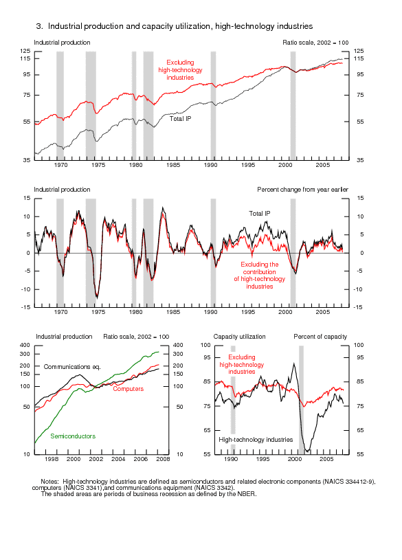 | Ascii | Screen reader | Summary: Industrial Production and Capacity Utilization | Chart | Chart 1: Industrial Production, Capacity, and Capacity Utilization | Chart | Chart 2: Industrial Production and Capacity Utilization | Chart | Chart 3: Industrial Production and Capacity Utilization, High Technology Industries |