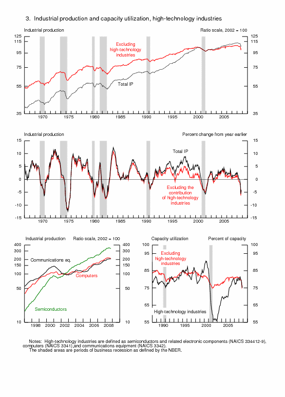 | Ascii | Screen reader | Summary: Industrial Production and Capacity Utilization | Chart | Chart 1: Industrial Production, Capacity, and Capacity Utilization | Chart | Chart 2: Industrial Production and Capacity Utilization | Chart | Chart 3: Industrial Production and Capacity Utilization, High Technology Industries |