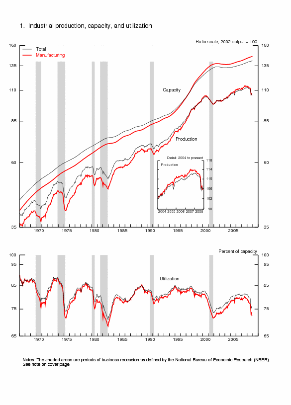 | Ascii | Screen reader | Summary: Industrial Production and Capacity Utilization | Chart | Chart 1: Industrial Production, Capacity, and Capacity Utilization | Chart | Chart 2: Industrial Production and Capacity Utilization | Chart | Chart 3: Industrial Production and Capacity Utilization, High Technology Industries |