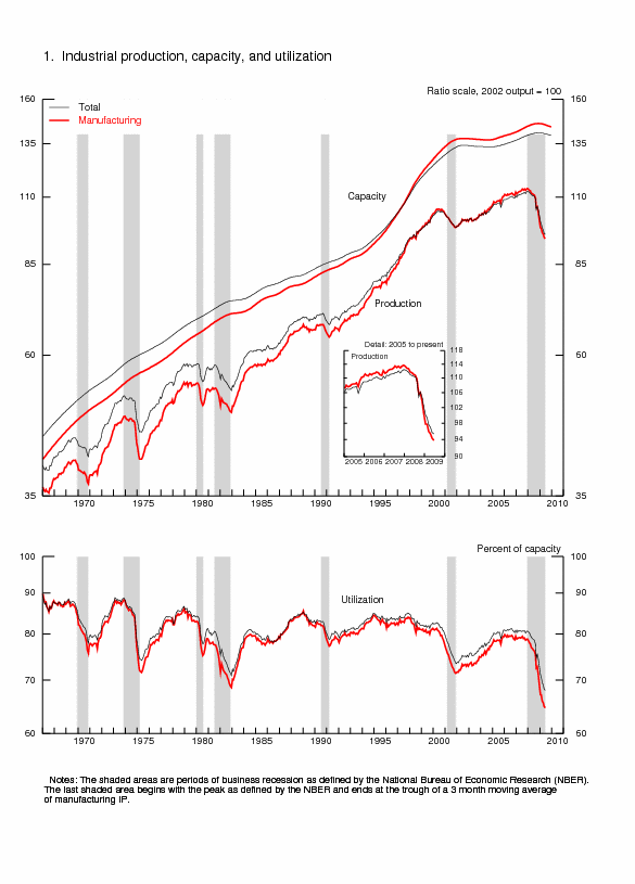 | Ascii | Screen reader | Summary: Industrial Production and Capacity Utilization | Chart | Chart 1: Industrial Production, Capacity, and Capacity Utilization | Chart | Chart 2: Industrial Production and Capacity Utilization | Chart | Chart 3: Industrial Production and Capacity Utilization, High Technology Industries |