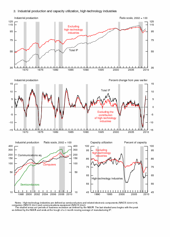 | Ascii | Screen reader | Summary: Industrial Production and Capacity Utilization | Chart | Chart 1: Industrial Production, Capacity, and Capacity Utilization | Chart | Chart 2: Industrial Production and Capacity Utilization | Chart | Chart 3: Industrial Production and Capacity Utilization, High Technology Industries |