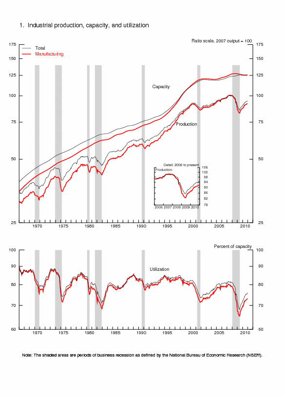 | Ascii | Screen reader | Summary: Industrial Production and Capacity Utilization | Chart | Chart 1: Industrial Production, Capacity, and Capacity Utilization | Chart | Chart 2: Industrial Production and Capacity Utilization | Chart | Chart 3: Industrial Production and Capacity Utilization, High Technology Industries |
