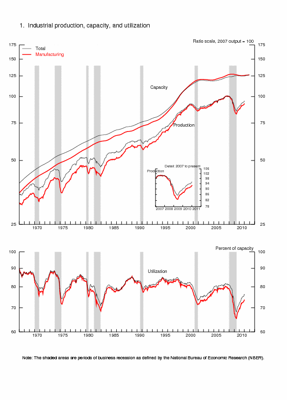 | Ascii | Screen reader | Summary: Industrial Production and Capacity Utilization | Chart | Chart 1: Industrial Production, Capacity, and Capacity Utilization | Chart | Chart 2: Industrial Production and Capacity Utilization | Chart | Chart 3: Industrial Production and Capacity Utilization, High Technology Industries |