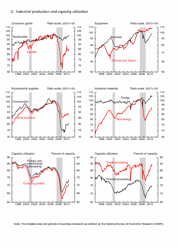 Capacity utilization rates in January at industries grouped by stage of process were as follows: At the crude stage, utilization fell 0.8 percentage point to 88.6 percent, a rate 2.2 percentage points above its 1972-2010 average; at the primary and semifinished stages, utilization declined 0.3 percentage point to 73.2 percent, a rate 8.1 percentage points below its long-run average; and at the finished stage, utilization increased 0.3 percentage point to 74.7 percent, a rate 2.7 percentage points below its long-run average.