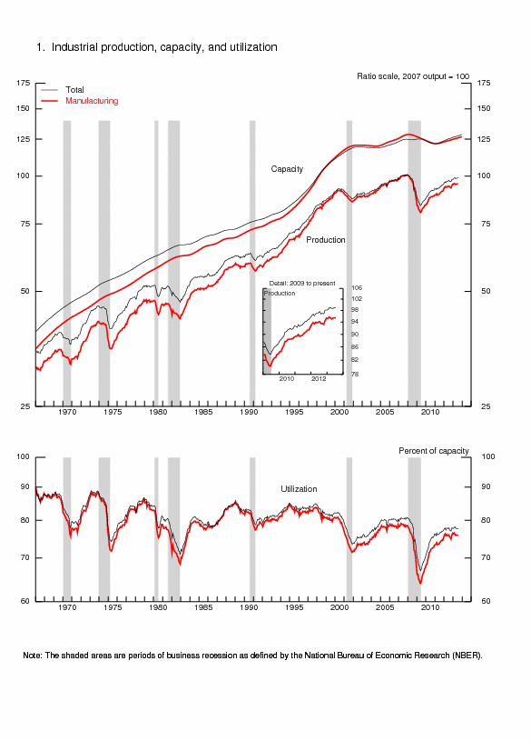 Note. The statistics in this release cover output, capacity, and capacity utilization in the U.S. industrial sector, which is defined by the Federal Reserve to comprise manufacturing, mining, and electric and gas utilities. Mining is defined as all industries in sector 21 of the North American Industry Classification System (NAICS); electric and gas utilities are those in NAICS sectors 2211 and 2212. Manufacturing comprises NAICS manufacturing industries (sector 31-33) plus the logging industry and the newspaper, periodical, book, and directory publishing industries. Logging and publishing are classified elsewhere in NAICS (under agriculture and information respectively), but historically they were considered to be manufacturing and were included in the industrial sector under the Standard Industrial Classification (SIC) system. In December 2002 the Federal Reserve reclassified all its industrial output data from the SIC system to NAICS.
